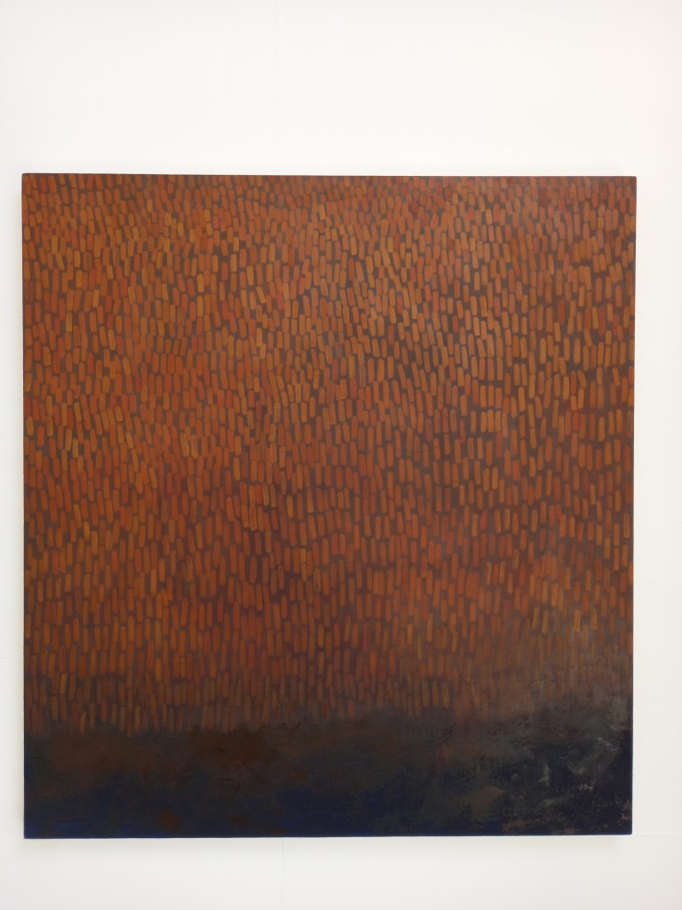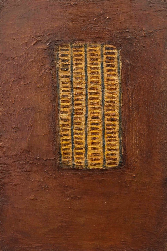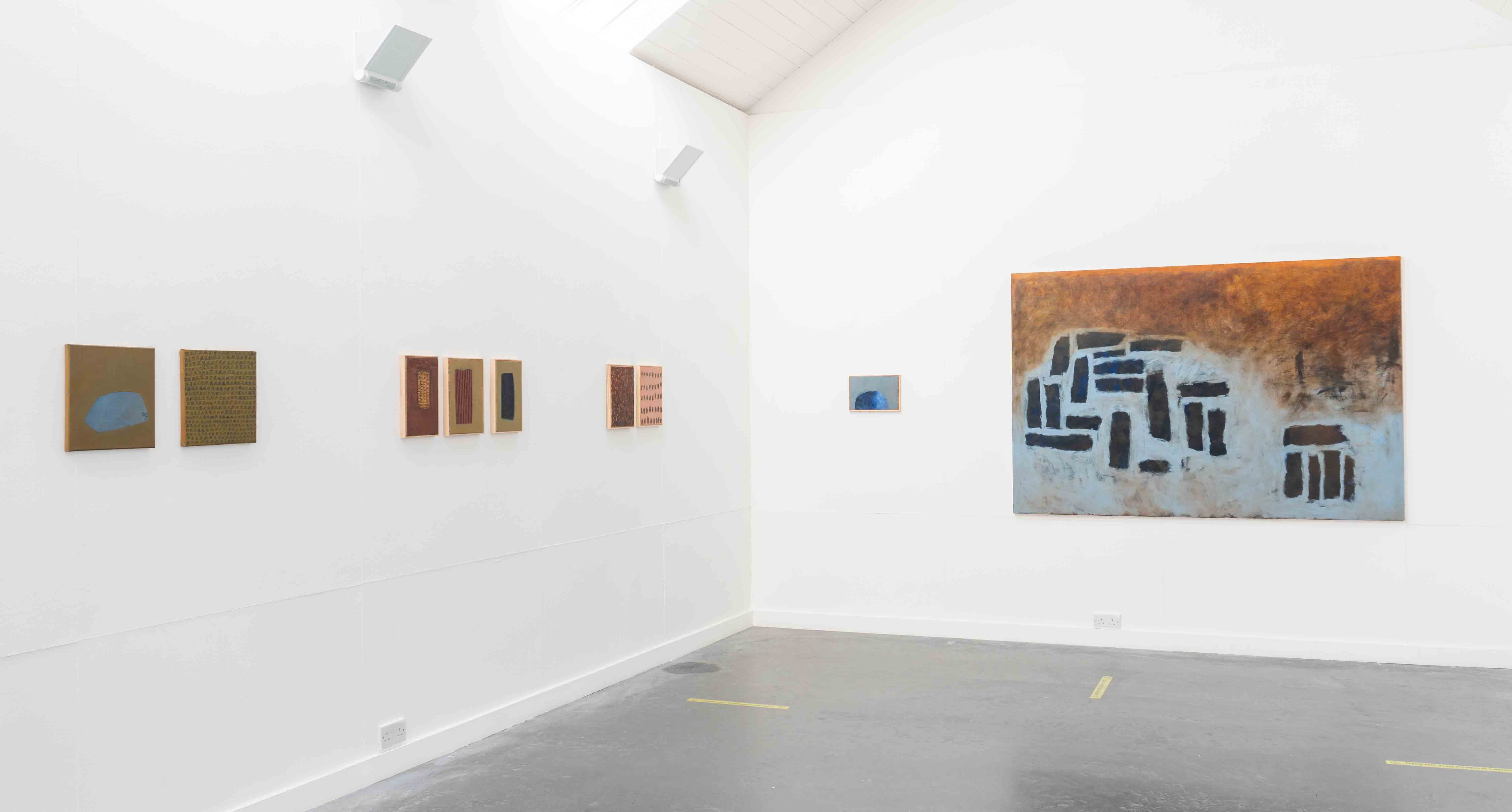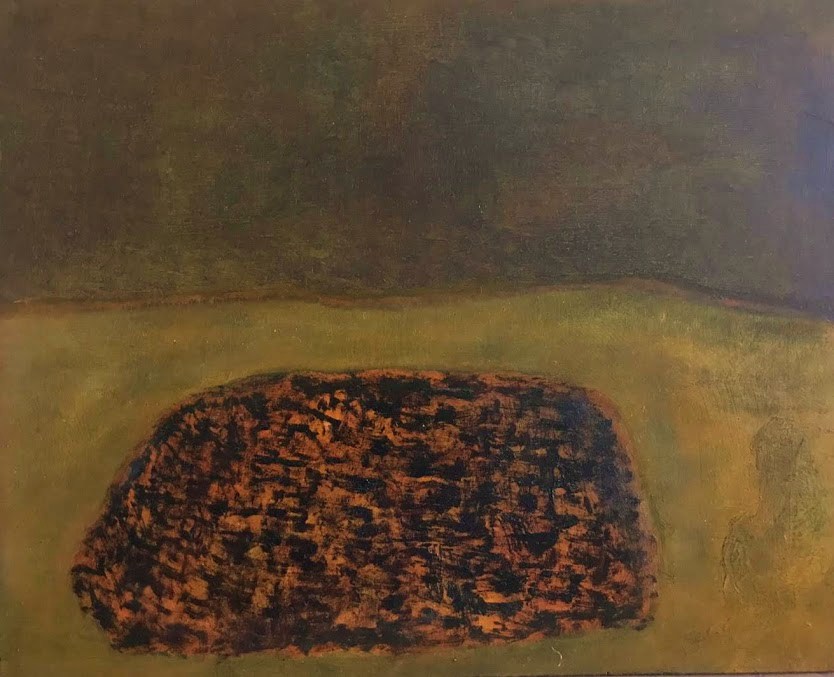 These paintings were shown at the exhibition not yet saved in Ballinglen Gallery Ballycastle, Co Mayo in August 2021. The title of the exhibition referenced the ongoing tradition of saving turf by cutting and drying peat, and the impact of this on the wider climate and ecosystems crisis. The individual paintings subtly convey a sense of the challenges of environmental sustainability, and are understated in tone and execution. The choice of colour palette, motifs, and patterns pay homage to the cultural and ecological importance of the bog, and highlights its relevance as a metaphor for a disappearing way of life.