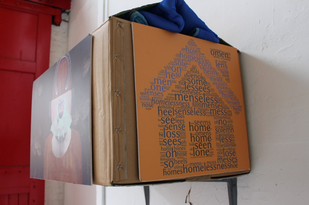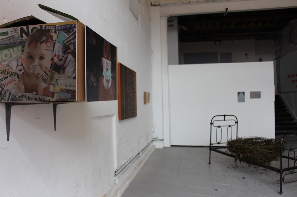 My work focused on homelessness and comprised of three sculptural installations which consciously referenced the Dada movement, in the use of collage, assemblage and found materials. Also exhibited were a group of paintings, each a work in its own right, which gave visual expression to contemporary and past housing, income and wealth inequalities.